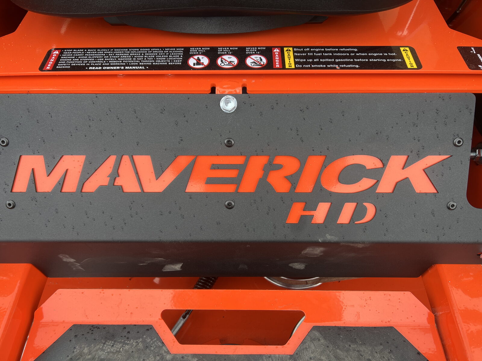 AMERICAN MADE TOUGHNESS: The Maverick HD Zero-Turn Mower is proudly built in the USA at our Arkansas headquarters. It's built around a heavy-gauge, all-steel, all-welded and fabricated 2" x 2" frame rail. The solid steel, 7-gauge formed and welded deck with reinforced 3/8" sides features a deeper 5.5” shell and an improved baffling system for greater grass lifting power and an even cleaner cut. Patented Dual Deck Support Isolators helps minimize damage from side impacts. And all of this strength is packed on a lower profile frame, which helps to improve your stability on inclines and uneven turf. The Maverick HD is ready for commercial duty.